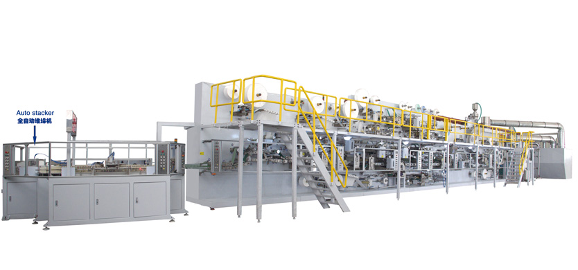 高速粉碎機(可使用未處理漿) 棉成型機構 高分子下料機構 原材料供給機構 彈性耳帶應用機構 弧切組合刀具 縱向折疊機構 終切組合刀具 橫向折疊機構 供氣機構 安全防護機構 |